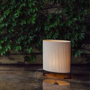 Aktuell steht die AMID in vier Grössen zur Verfügung. Allen gemeinsam ist der Aufbau mit einem Rahmen aus fein texturiert schwarz lackiertem Stahl, einem Leuchtenschirm aus handgewickeltem UV-geschütztem Wickelmaterial in Leinenoptik und ein Glasdiffusor aus mundgeblasenem Opalglas, der das E27 Leuchtmittel überfängt. Die Füsse sind mit schwarzem Gummiringen umfangen, um die Leuchte leicht vom Boden abzuheben und ein Rutschen zu mindern. Es stehen schraubbare Bodenanker zur Verfügung, die bei Exposition in windigen Gegenden hilfreich sein können.