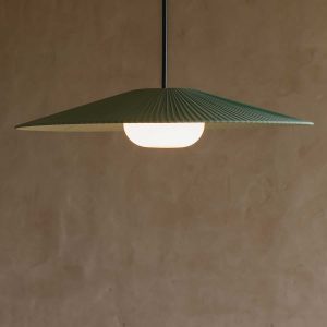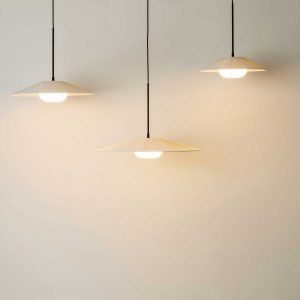 Die Serie ARCTIC CIRCLE basiert auf der einfachen Idee einer Pendelleuchten- und einer Wandleuchtenbasis, die jeweils als Träger für drei Schirmgrössen in zwei Stofffarben dienen. Die Wickelplisseeschirme sind sorgfältig von Hand gefertigt und streuen nicht nur das Licht in den Raum, sondern wirken auch wie grafische Gestaltungsflächen.