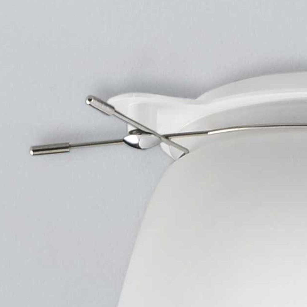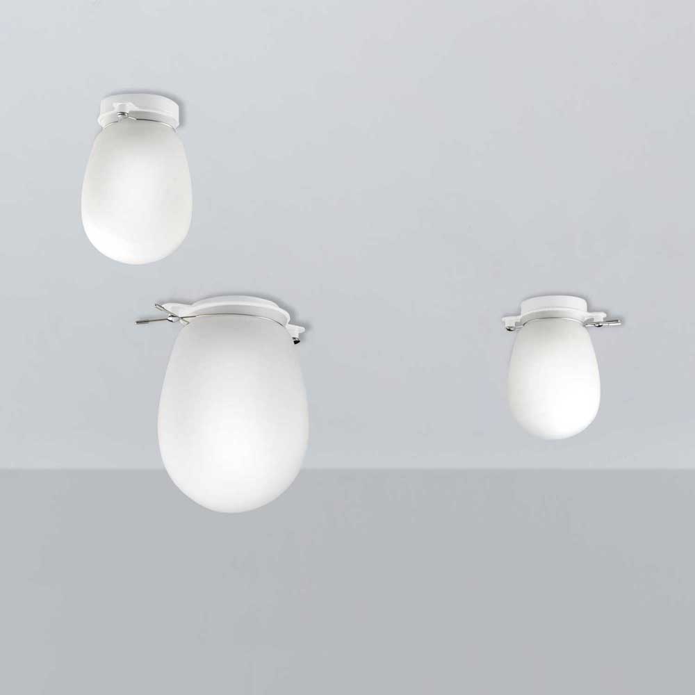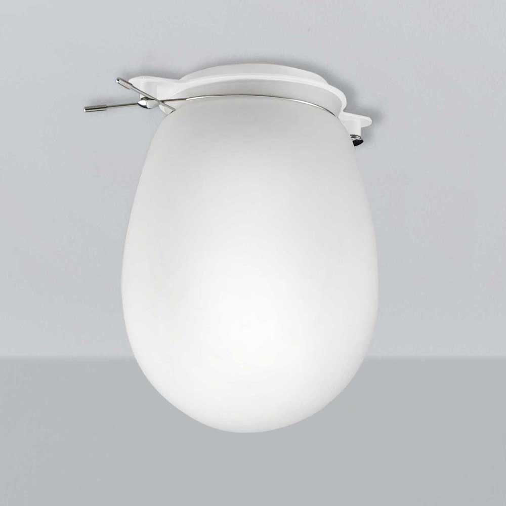 Deckenleuchte aus weiss lackiertem Stahl mit satiniertem Formglas, Dimmbarkeit vom verwendeten Leuchtmittel abhängig, Abstrahlwinkel hängt vom verwendeten Leuchtmittel ab, 1 x Hochvolt-Fassung E27 240 Volt mit maximaler Belastbarkeit von 42 Watt, Hochvolt-Leuchte, Schutzklasse 20 (Staub und Nässe), Schutzklasse I (Schutz gegen Stromstösse), darf auf normalerweise brennbaren Oberflächen montiert werden, Farbwiedergabeindex hängt vom verwendeten Leuchtmittel ab, Energieeffizienzklasse hängt vom verwendeten Leuchtmittel ab, Höhe 200 mm, Durchmesser 140 mm, Ausladung von Decke, Wand oder Boden 200 mm, Energieeffizienzklasse E, 1 Karton (16,5 x 16,5 x 34 cm), Versandgewicht 0,9 kg, exklusive E27 Leuchtmittel