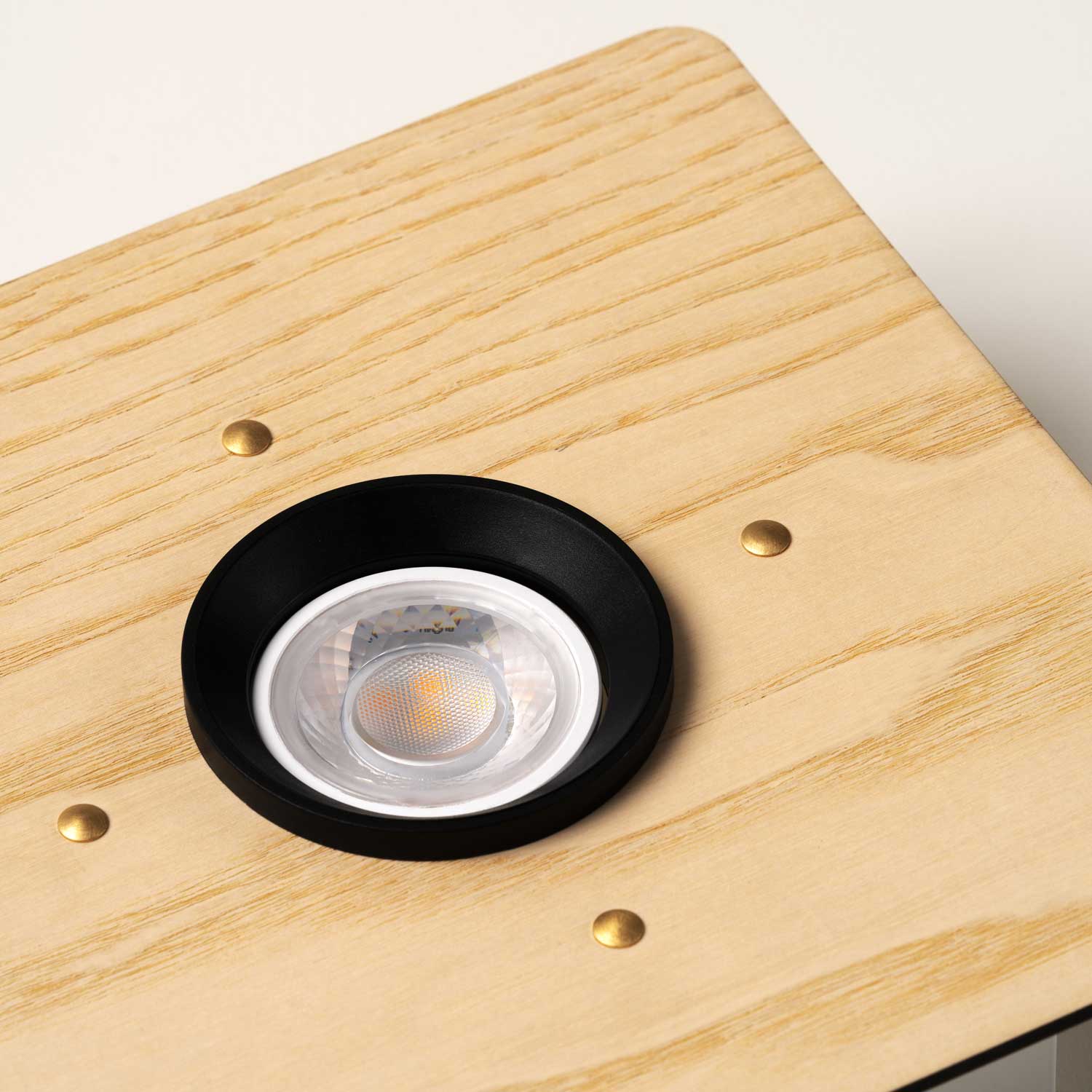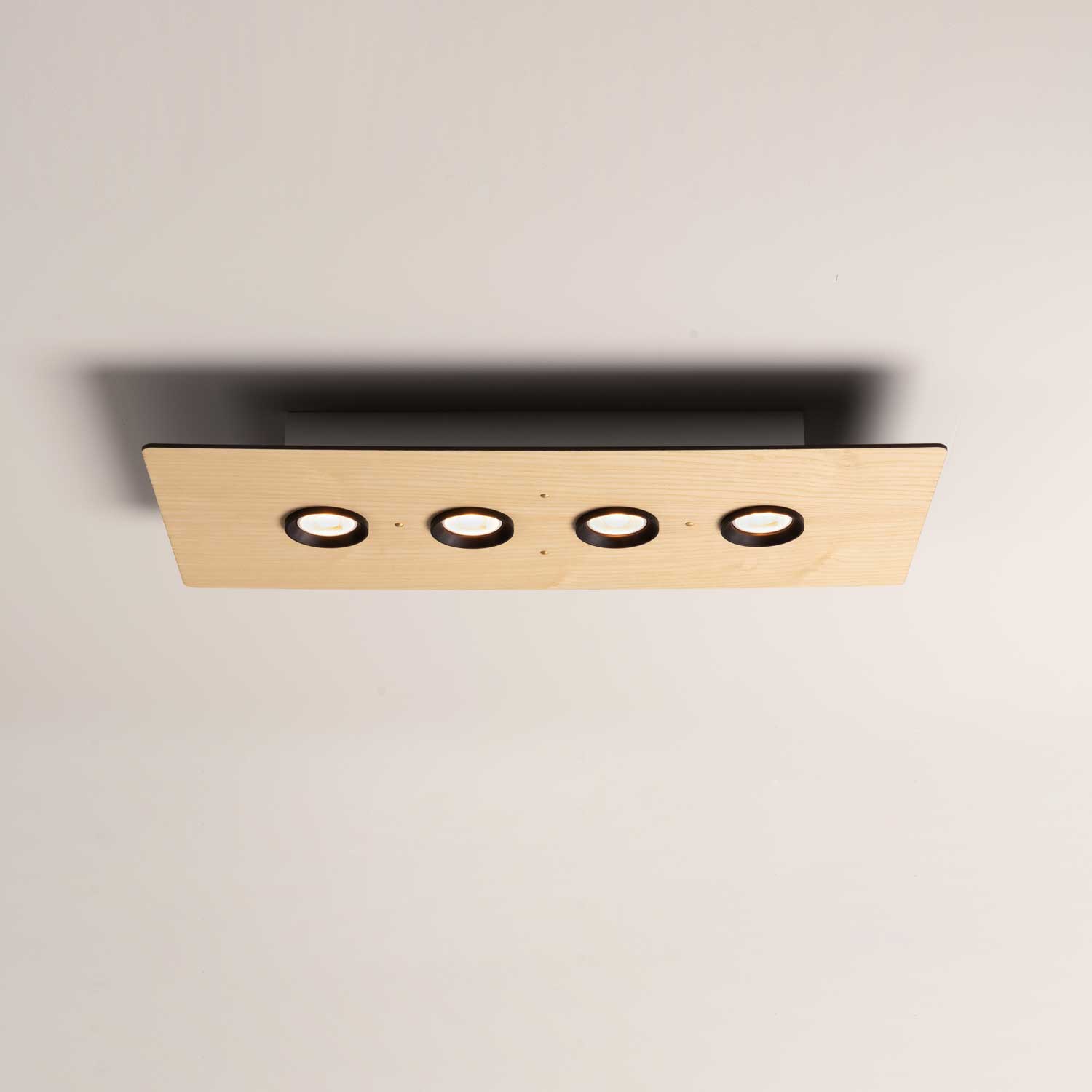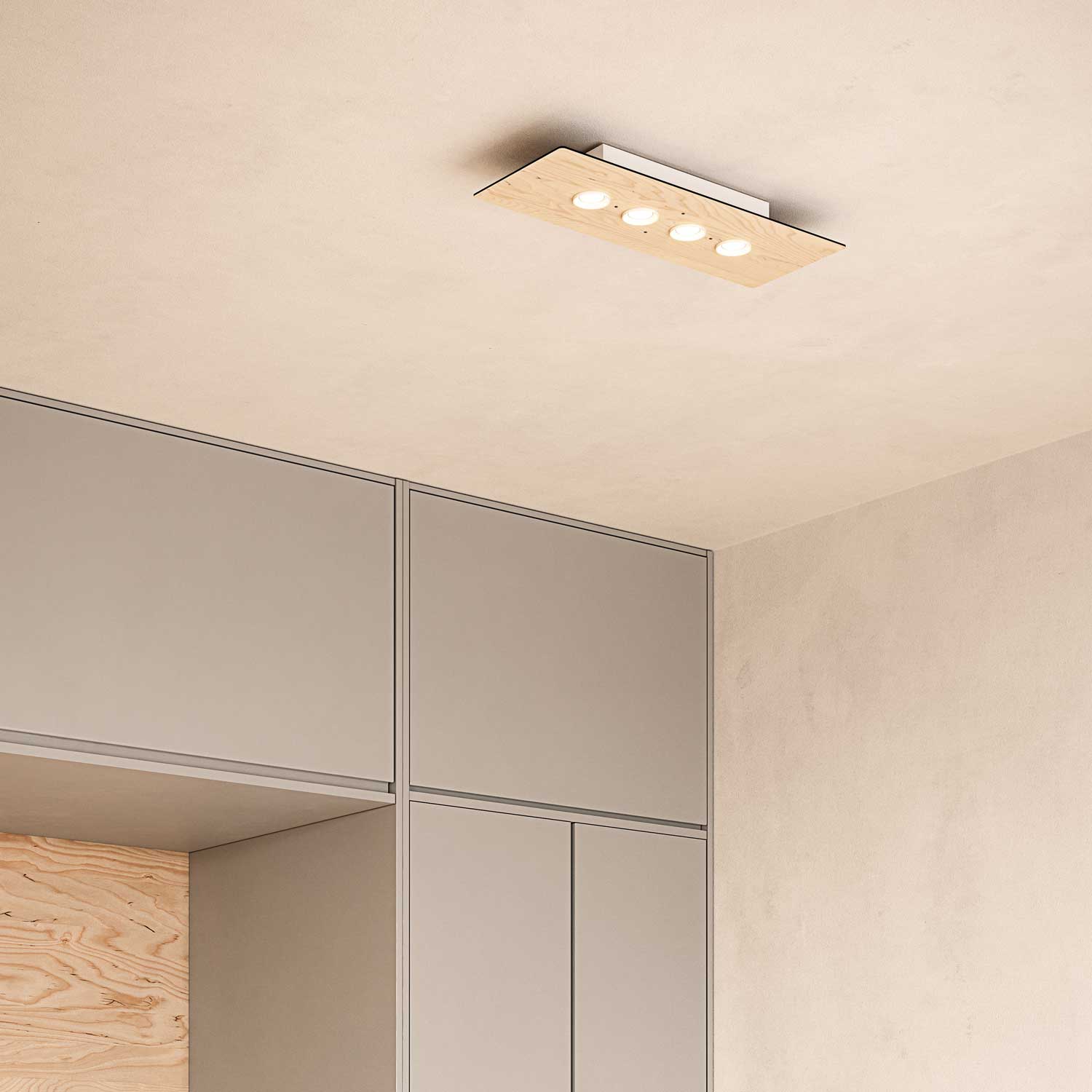 Deckenleuchte aus mundgeblasenem weißen Opalglas mit weiss lackiertem Stahl und Eschenholz, Dimmbarkeit vom verwendeten Leuchtmittel abhängig, 4 x Fassung GU10 maximale Belastbarkeit 8 Watt, Hochvolt-Leuchte, Schutzklasse 20 (Staub und Nässe), Schutzklasse I (Schutz gegen Stromstösse), darf auf normalerweise brennbaren Oberflächen montiert werden, Farbwiedergabeindex hängt vom verwendeten Leuchtmittel ab, Energieeffizienzklasse hängt vom verwendeten Leuchtmittel ab, Höhe 75 mm, Breite 630 mm, Tiefe 270 mm, Energieeffizienzklasse F, 1 Karton (68 x 29 x 12,5 cm), Versandgewicht 5 kg, exklusive GU10 Leuchtmittel