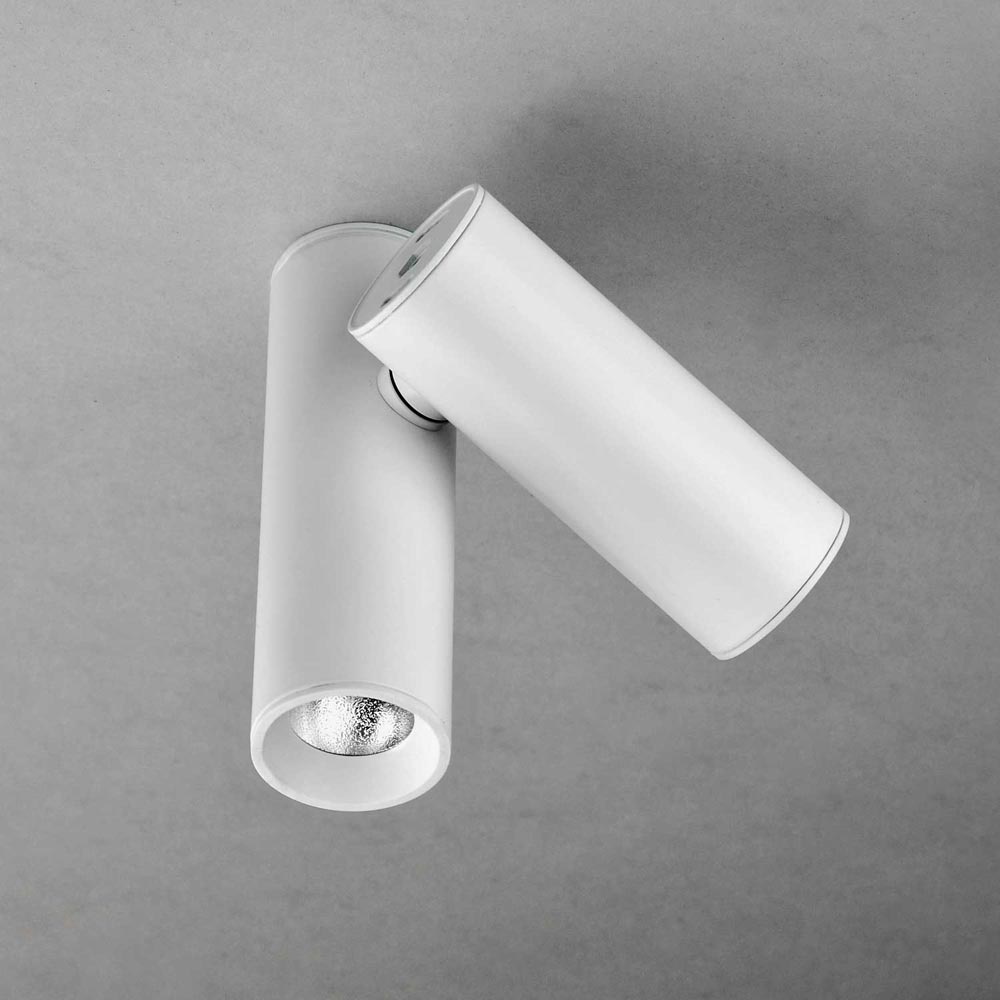 Deckenleuchte aus weiss lackiertem Stahl mit weiss lackiertem Aluminium, dreh- und schwenkbar, dimmbar mit passendem Phasenanschnittsdimmer, eingebauter JORDAN Reflektor mit 35° Abstrahlwinkel, 2 x Hochvolt LED mit integriertem Netzteil, 5 Watt 500 Lumen 100 Lumen/Watt 2700 Kelvin RA90, Gesamtleistung 1000 Lumenintegriertes Netzteil auf der Platine, Hochvolt LED, Schutzklasse 20 (Staub und Nässe), Schutzklasse I (Schutz gegen Stromstösse), darf auf normalerweise brennbaren Oberflächen montiert werden, LED Farbwiedergabeindex CRI90/RA90, Energieffizienzklasse A+, Höhe 123 mm, Breite 85 mm, Tiefe 40 mm, Ausladung von Decke, Wand oder Boden 123 mm, Energieeffizienzklasse E, 1 Karton (16,5 x 13,5 x 8,9 cm), Versandgewicht 0,5 kg, inklusive LED/DOB Leuchtmittel