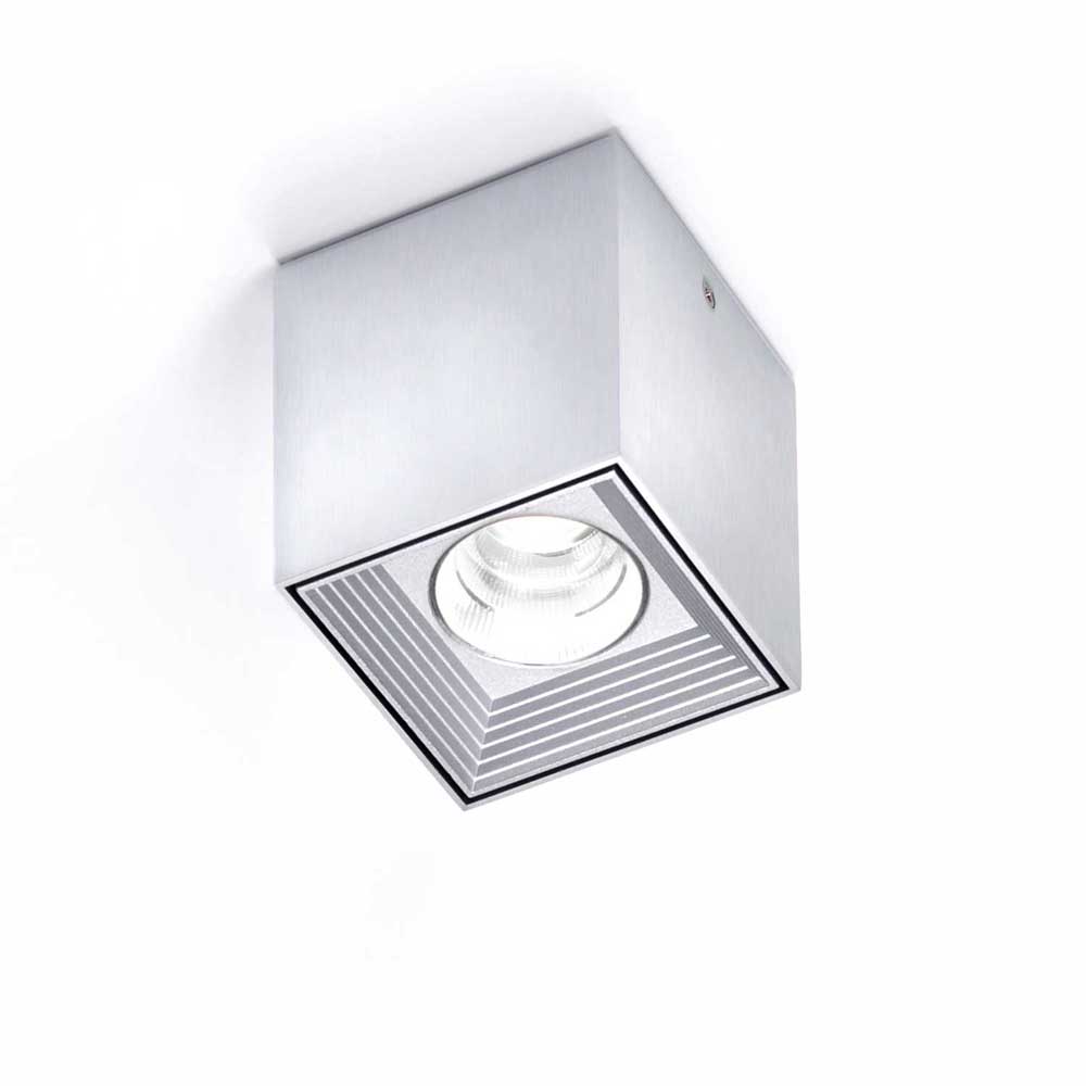 Deckenleuchte aus gebürstetem silberfarben eloxiertem Aluminium mit silbergrau lackiertem Kunststoff, dimmbar mit passendem Phasenanschnittsdimmer oder mit passendem Phasenabschnittsdimmer, eingebauter JORDAN Reflektor mit 50° Abstrahlwinkel, 1 x Niedervolt LED, 12,7 Watt 1274 Lumen 100 Lumen/Watt 2700 Kelvin RA90integrierter Treiber im Gehäuse, Niedervolt LED, Schutzklasse 20 (Staub und Nässe), Schutzklasse I (Schutz gegen Stromstösse), darf auf normalerweise brennbaren Oberflächen montiert werden, LED Farbwiedergabeindex CRI90/RA90, Energieffizienzklasse A+, Höhe 91 mm, Breite 80 mm, Tiefe 80 mm, Ausladung von Decke, Wand oder Boden 91 mm, Energieeffizienzklasse E, 1 Karton (16,5 x 13,5 x 8,9 cm), Versandgewicht 0,55 kg, inklusive LED/COB Leuchtmittel