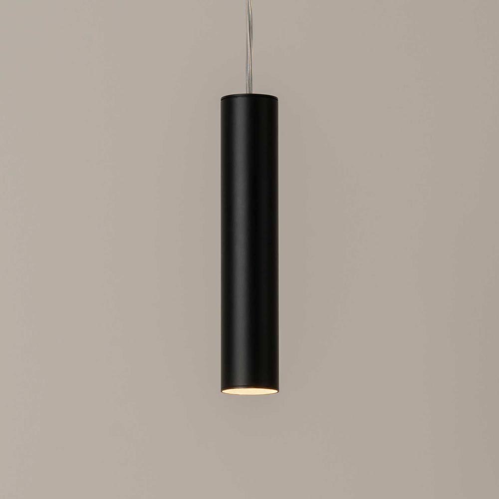 Pendelleuchte aus schwarz lackiertem Stahl mit schwarz lackiertem Aluminium, dimmbar mit passendem Phasenanschnittsdimmer, eingebauter JORDAN Reflektor mit 35° Abstrahlwinkel, 1 x Hochvolt LED mit integriertem Netzteil, 5 Watt 500 Lumen 100 Lumen/Watt 2700 Kelvin RA90integriertes Netzteil auf der Platine, Hochvolt LED, Schutzklasse 20 (Staub und Nässe), Schutzklasse I (Schutz gegen Stromstösse), darf auf normalerweise brennbaren Oberflächen montiert werden, LED Farbwiedergabeindex CRI90/RA90, Energieffizienzklasse A+, Höhe 203 mm, Durchmesser 40 mm, Ausladung von Decke, Wand oder Boden 3000 mm, Energieeffizienzklasse E, 1 Karton (37,2 x 7,7 x 6,4 cm), Versandgewicht 0,58 kg, inklusive LED/DOB Leuchtmittel