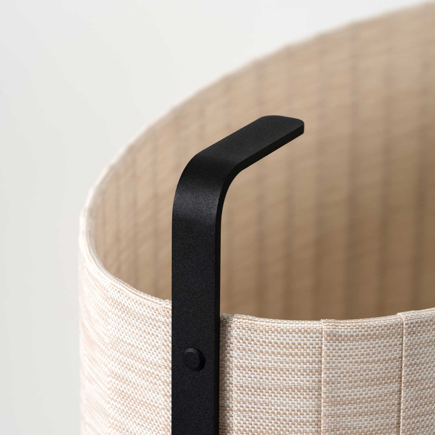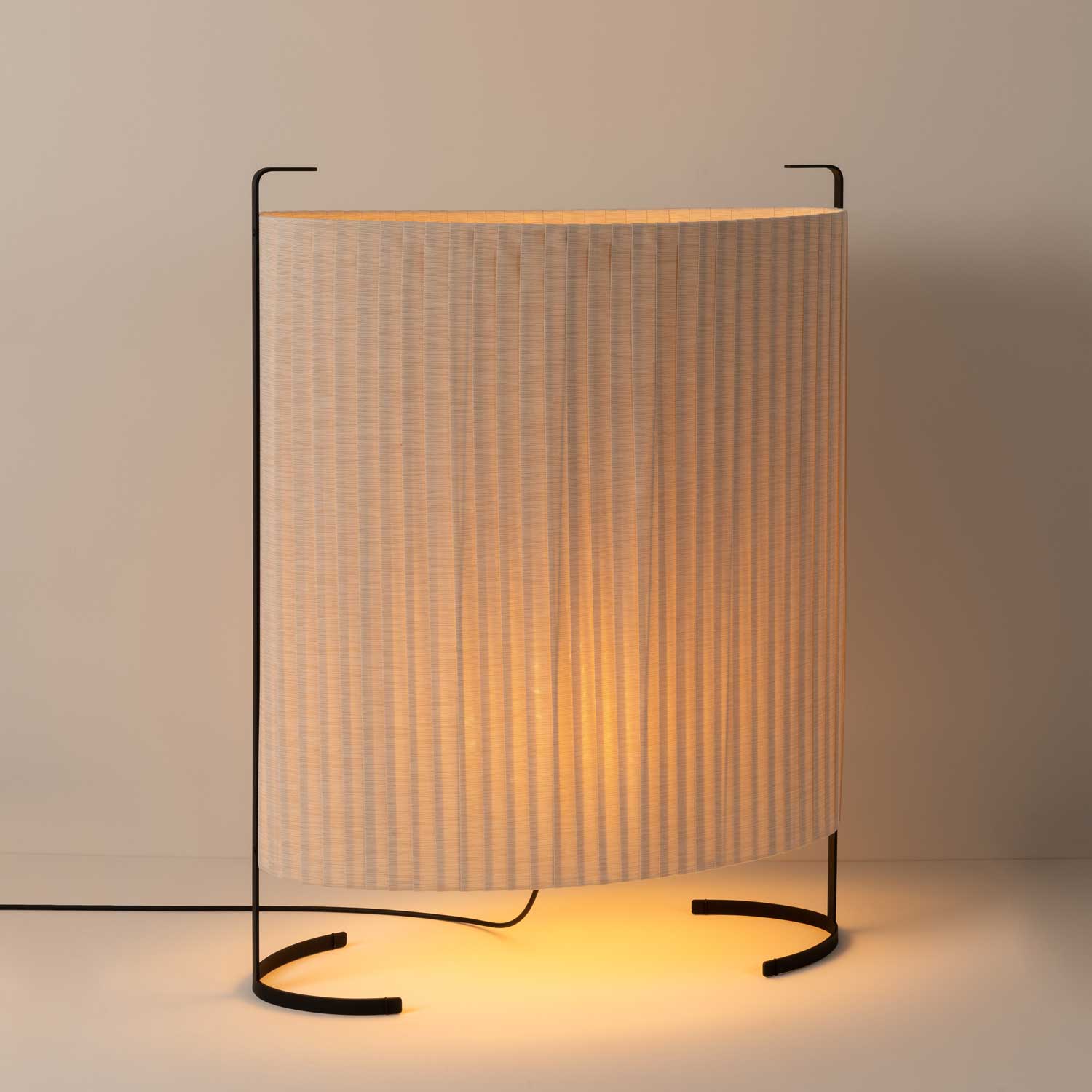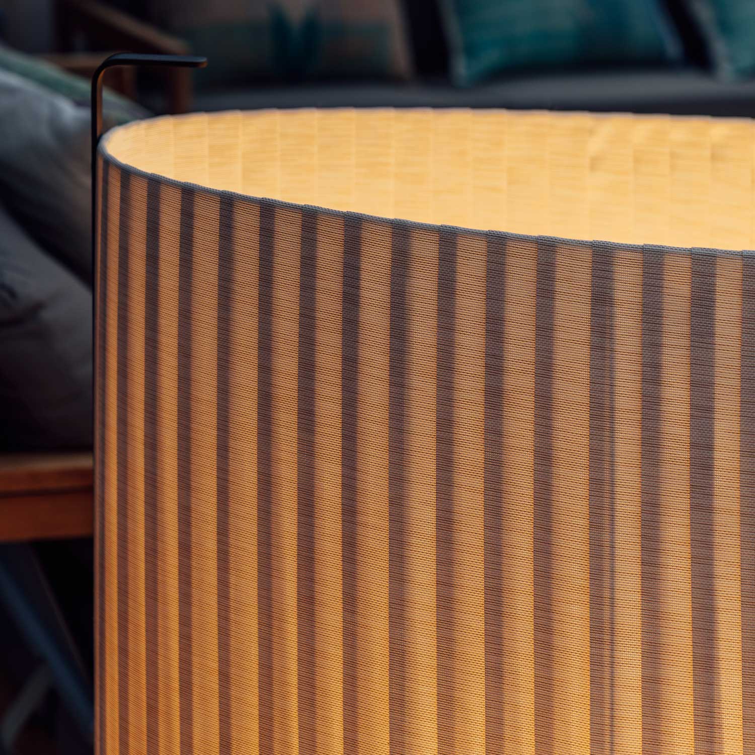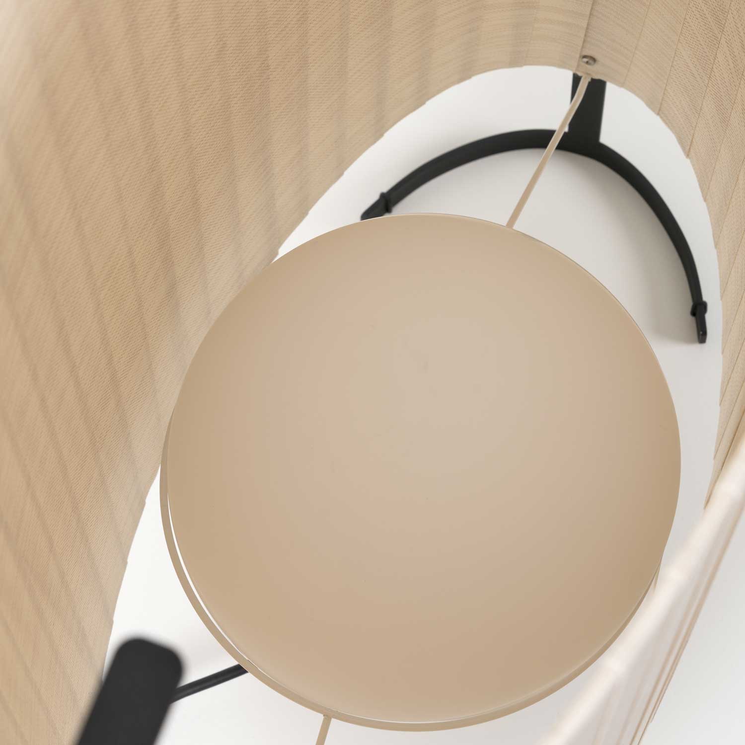 Stehleuchte aus leinenfarbigem Wickelplissee mit schwarz lackiertem Stahl und mundgeblasenem Opalglasdiffusor, Dimmbarkeit vom verwendeten Leuchtmittel abhängig, 1 x Hochvolt-Fassung E27 240 Volt mit maximaler Belastbarkeit von 12 Watt LED, Hochvolt-Leuchte, Schutzklasse 55 (Staub und Nässe), Schutzklasse I (Schutz gegen Stromstösse), darf auf normalerweise brennbaren Oberflächen montiert werden, Farbwiedergabeindex hängt vom verwendeten Leuchtmittel ab, Energieeffizienzklasse hängt vom verwendeten Leuchtmittel ab, Höhe 1060 mm, Breite 802 mm, Tiefe 368 mm, Energieeffizienzklasse E, 2 Karton (150,9 x 25,9 x 28 cm, 83 x 40 x 87 cm), Versandgewicht 14,1 kg, exklusive E27 Leuchtmittel
