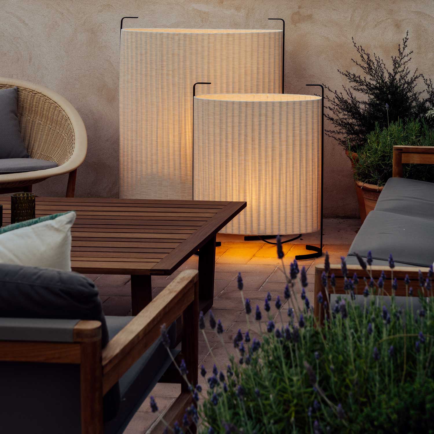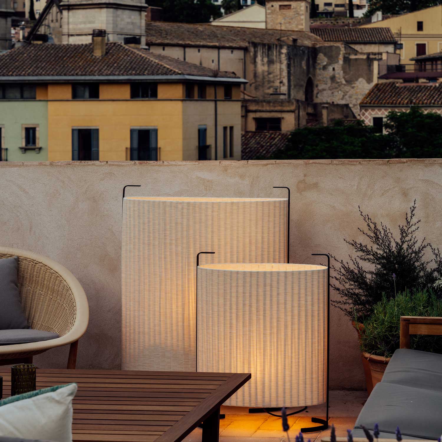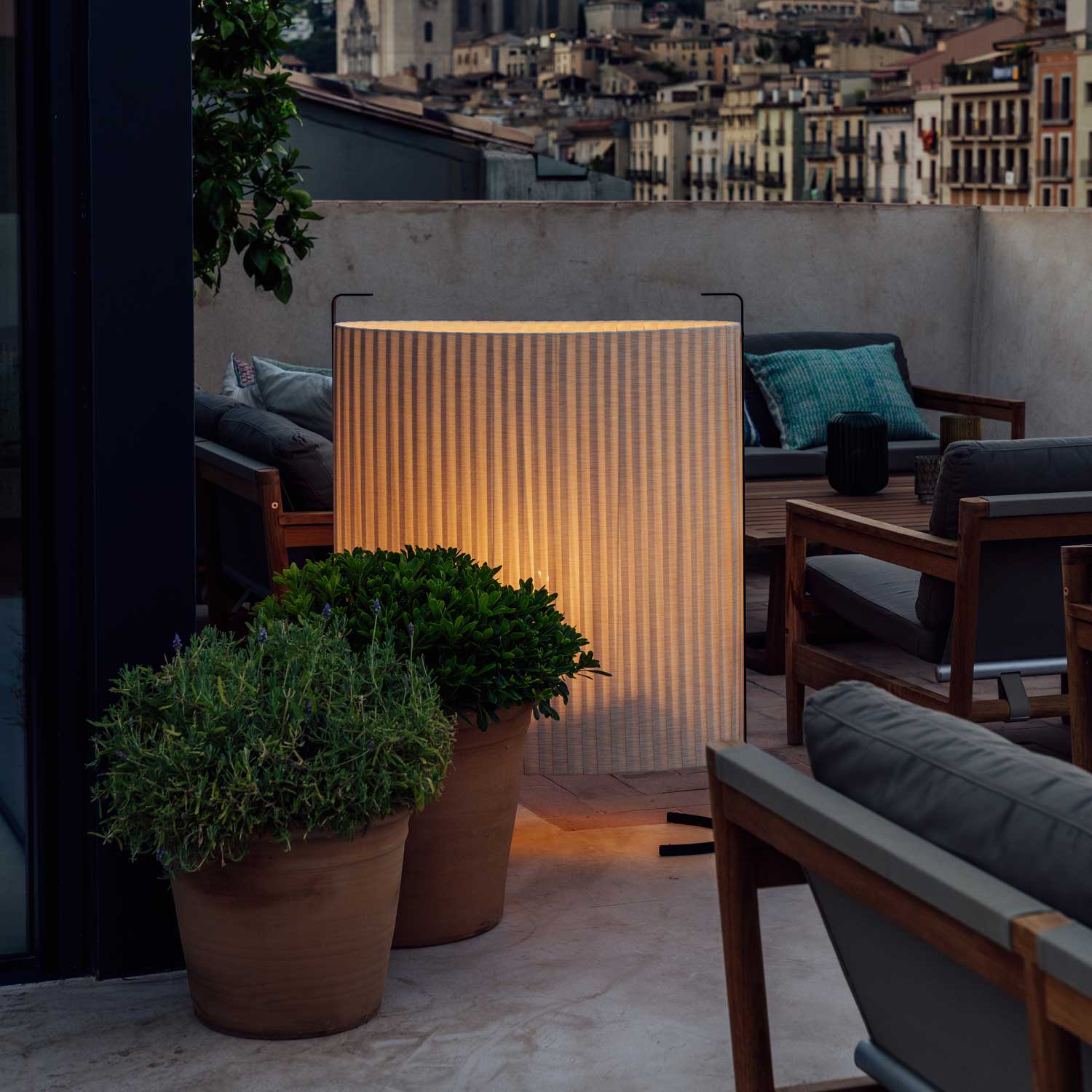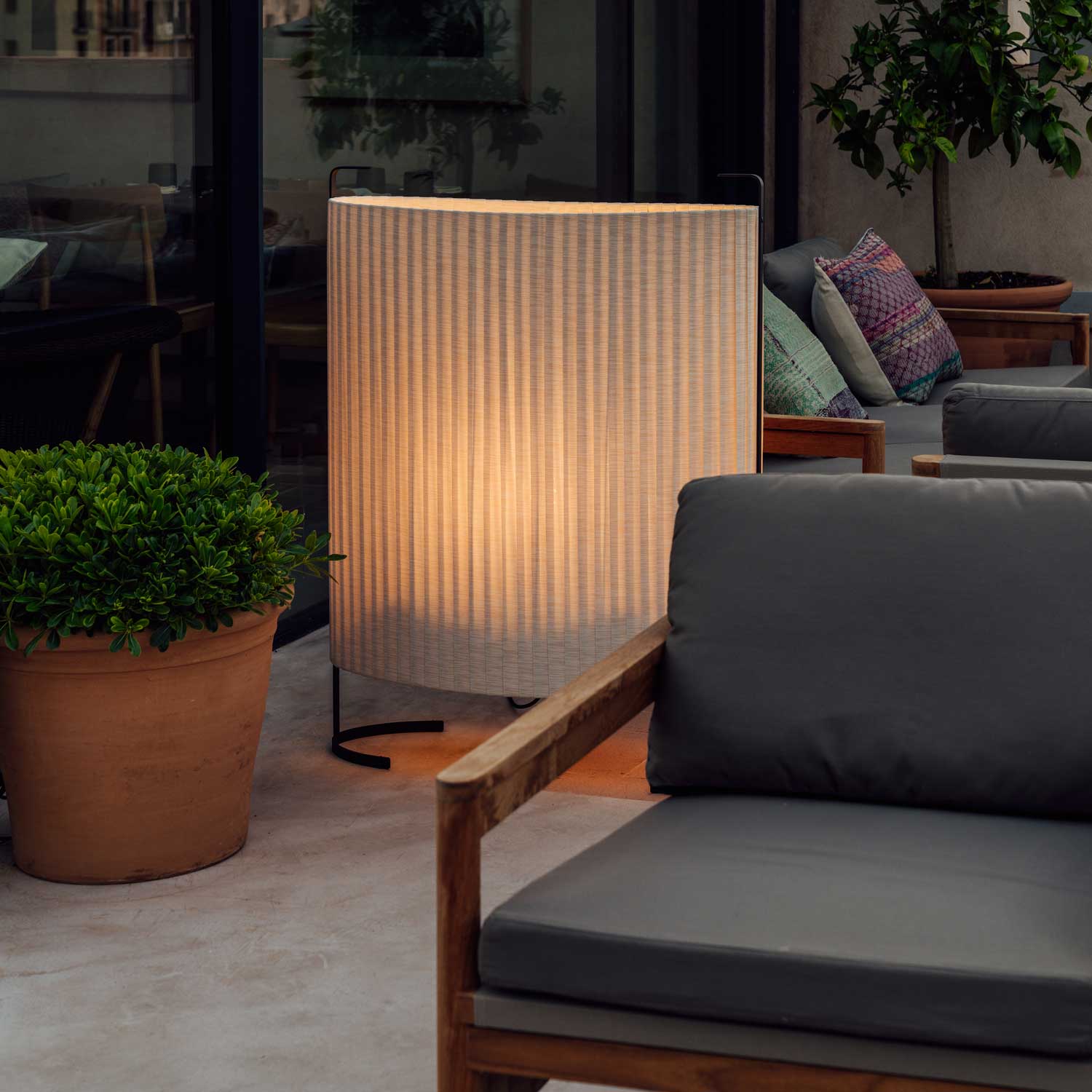 Stehleuchte aus leinenfarbigem Wickelplissee mit schwarz lackiertem Stahl und mundgeblasenem Opalglasdiffusor, Dimmbarkeit vom verwendeten Leuchtmittel abhängig, 1 x Hochvolt-Fassung E27 240 Volt mit maximaler Belastbarkeit von 12 Watt LED, Hochvolt-Leuchte, Schutzklasse 55 (Staub und Nässe), Schutzklasse I (Schutz gegen Stromstösse), darf auf normalerweise brennbaren Oberflächen montiert werden, Farbwiedergabeindex hängt vom verwendeten Leuchtmittel ab, Energieeffizienzklasse hängt vom verwendeten Leuchtmittel ab, Höhe 1060 mm, Breite 802 mm, Tiefe 368 mm, Energieeffizienzklasse E, 2 Karton (150,9 x 25,9 x 28 cm, 83 x 40 x 87 cm), Versandgewicht 14,1 kg, exklusive E27 Leuchtmittel