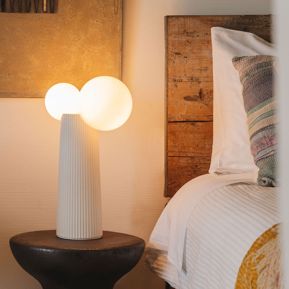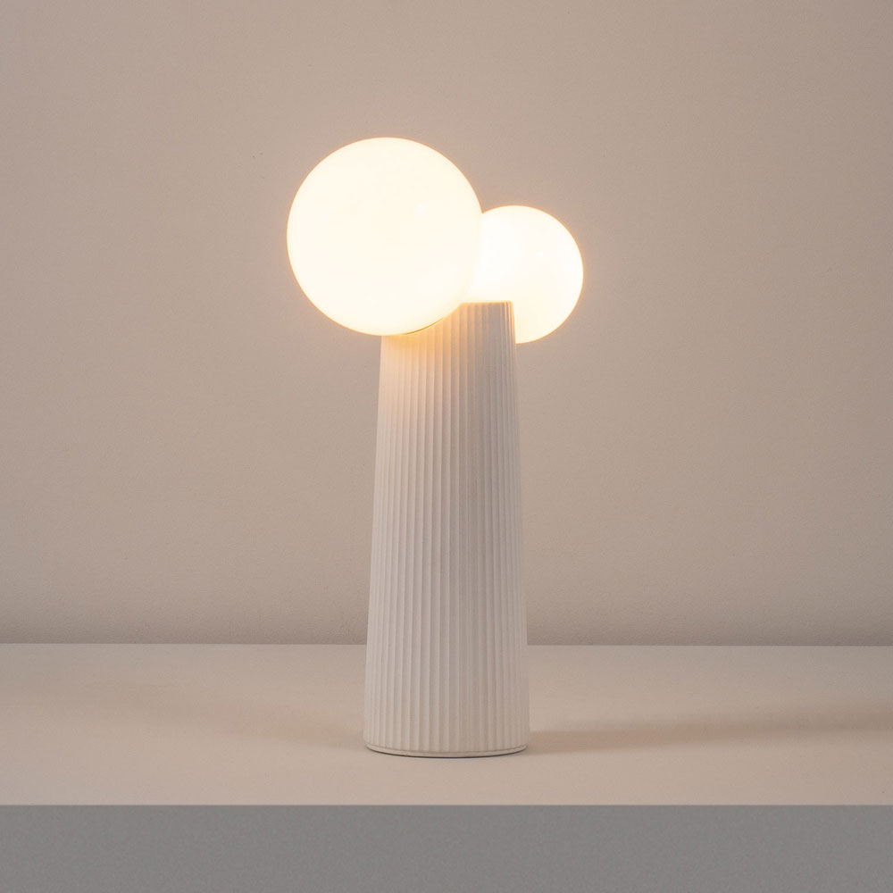 Tischleuchte aus minkfarben lackierter Keramik, mit mundgeblasenem Opalglasdiffusor, mit Handdimmer im Anschlusskabel, schwarzes Zuleitungskabel mit Schalter, optionaler Zuleitungsdimmer für Tischleuchten 2401, Dimmbarkeit vom verwendeten Leuchtmittel abhängig, 2 x Hochvolt-Fassung G9 mit maximale Belastbarkeit von 8 Watt, Hochvolt-Leuchte, Schutzklasse 20 (Staub und Nässe), Schutzklasse II (Schutz gegen Stromstösse), darf auf normalerweise brennbaren Oberflächen montiert werden, Farbwiedergabeindex hängt vom verwendeten Leuchtmittel ab, Energieeffizienzklasse hängt vom verwendeten Leuchtmittel ab, Höhe 427 mm, Breite 236 mm, Tiefe 140 mm, Ausladung von Decke, Wand oder Boden 427 mmDimmer circa 155 cm vom Stecker entfernt, Energieeffizienzklasse F, 1 Karton (41 x 41 x 15 cm), Versandgewicht 2,8 kg, exklusive G9 Leuchtmittel