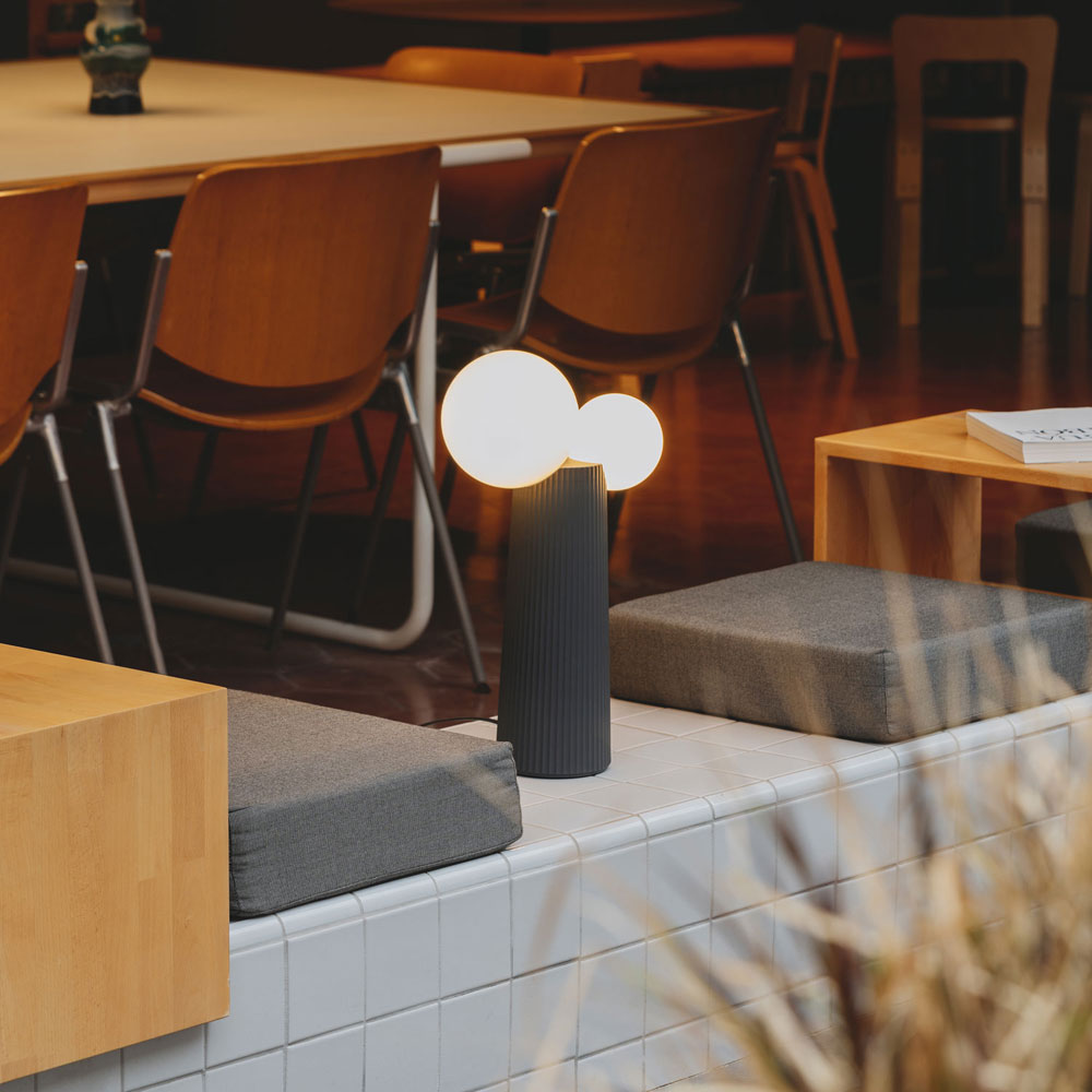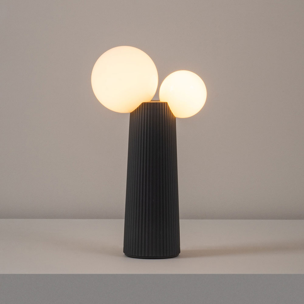 Tischleuchte aus anthrazitfarben lackierter Keramik, mit mundgeblasenem Opalglasdiffusor, mit Handdimmer im Anschlusskabel, schwarzes Zuleitungskabel mit Schalter, optionaler Zuleitungsdimmer für Tischleuchten 2401, Dimmbarkeit vom verwendeten Leuchtmittel abhängig, 2 x Hochvolt-Fassung G9 mit maximale Belastbarkeit von 8 Watt, Hochvolt-Leuchte, Schutzklasse 20 (Staub und Nässe), Schutzklasse II (Schutz gegen Stromstösse), darf auf normalerweise brennbaren Oberflächen montiert werden, Farbwiedergabeindex hängt vom verwendeten Leuchtmittel ab, Energieeffizienzklasse hängt vom verwendeten Leuchtmittel ab, Höhe 427 mm, Breite 236 mm, Tiefe 140 mm, Ausladung von Decke, Wand oder Boden 427 mmDimmer circa 155 cm vom Stecker entfernt, Energieeffizienzklasse F, 1 Karton (41 x 41 x 15 cm), Versandgewicht 2,8 kg, exklusive G9 Leuchtmittel