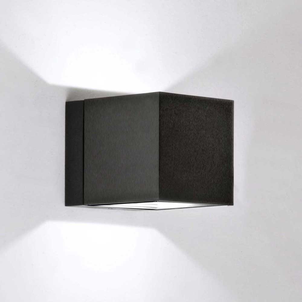 Wandleuchte aus gebürstetem schwarz eloxiertem Aluminium, dimmbar mit passendem Phasenanschnittsdimmer, 1 x Hochvolt LED mit integriertem Netzteil, 7 Watt 665 Lumen 95 Lumen/Watt 2700 Kelvin RA90integriertes Netzteil auf der Platine, Hochvolt LED, Schutzklasse 20 (Staub und Nässe), Schutzklasse I (Schutz gegen Stromstösse), darf auf normalerweise brennbaren Oberflächen montiert werden, LED Farbwiedergabeindex CRI90/RA90, Energieffizienzklasse A+, Höhe 80 mm, Breite 80 mm, Tiefe 101 mm, Ausladung von Decke, Wand oder Boden 101 mm, Energieeffizienzklasse E, 1 Karton (16,5 x 13,5 x 8,9 cm), Versandgewicht 0,5 kg, inklusive LED/DOB Leuchtmittel