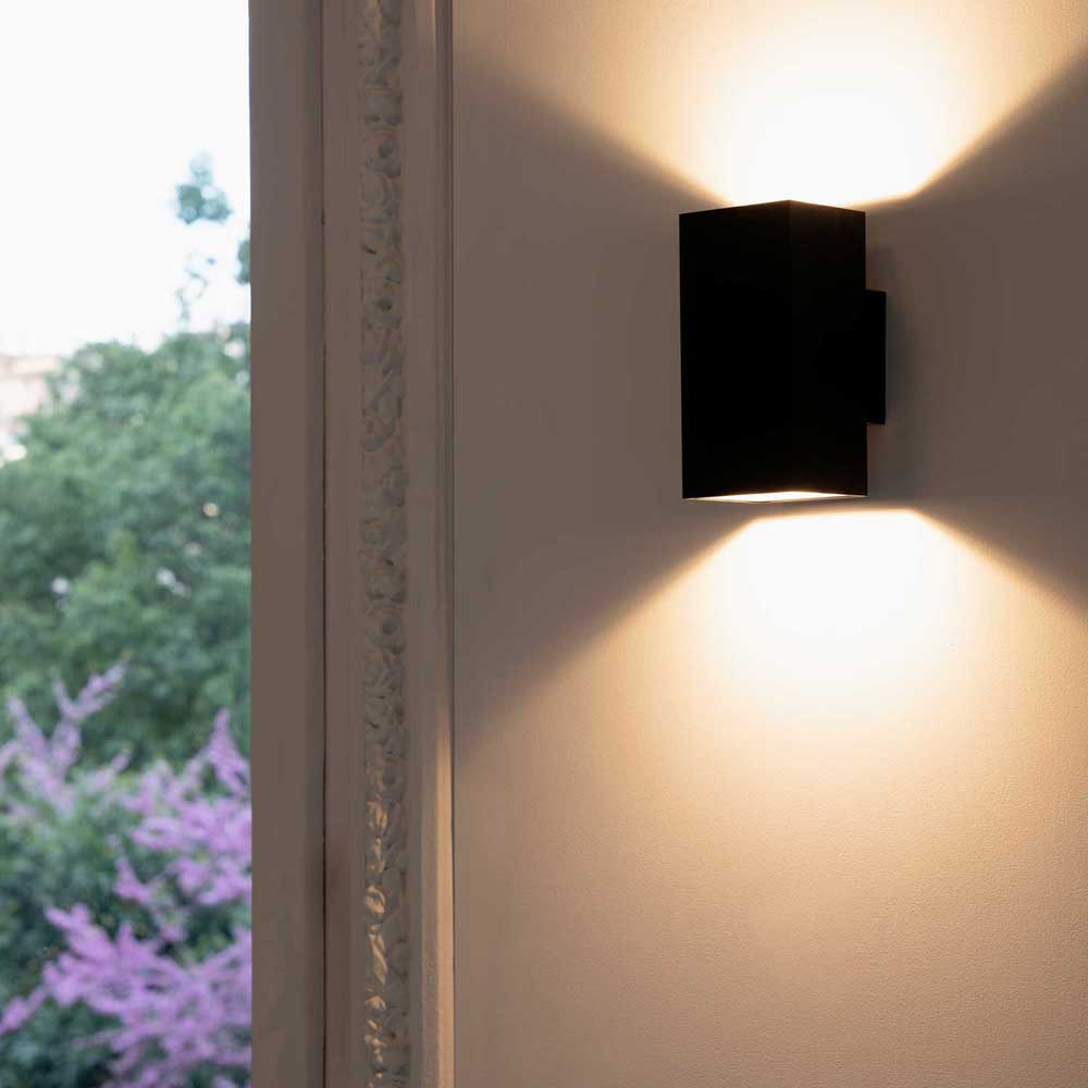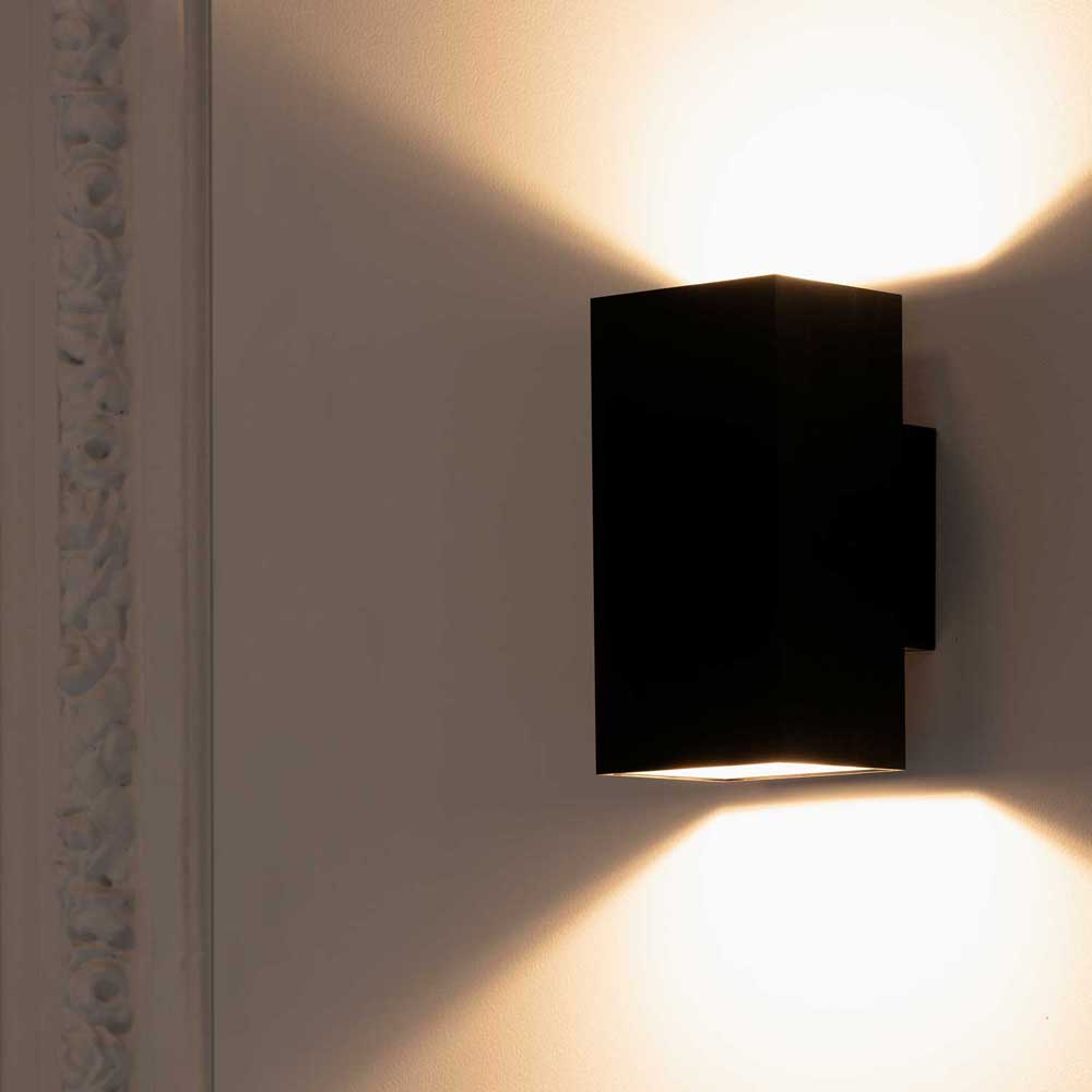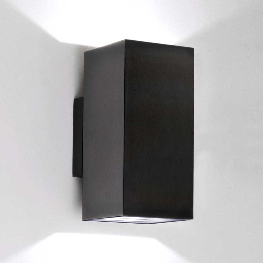 Wandleuchte aus gebürstetem schwarz eloxiertem Aluminium, dimmbar mit passendem Phasenanschnittsdimmer, 2 x Hochvolt LED mit integriertem Netzteil, 7 Watt 665 Lumen 95 Lumen/Watt 2700 Kelvin RA90integriertes Netzteil auf der Platine, Hochvolt LED, Schutzklasse 20 (Staub und Nässe), Schutzklasse I (Schutz gegen Stromstösse), darf auf normalerweise brennbaren Oberflächen montiert werden, LED Farbwiedergabeindex CRI90/RA90, Energieffizienzklasse A+, Höhe 170 mm, Breite 80 mm, Tiefe 101 mm, Ausladung von Decke, Wand oder Boden 101 mm, Energieeffizienzklasse E, 1 Karton (24,3 x 12,1 x 9,8 cm), Versandgewicht 0,72 kg, inklusive LED/DOB Leuchtmittel