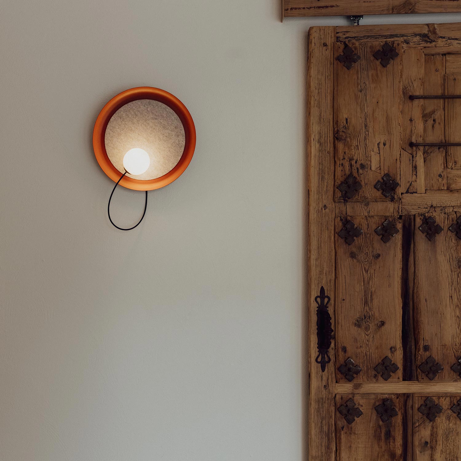 Wandleuchte aus kupfer-metalic lackiertem Stahl mit leistungsstarkem Neodym-Magnet und mundgeblasenem Opalglasdiffusor, Dimmbarkeit vom verwendeten Leuchtmittel abhängig, 1 x Hochvolt-Fassung G9 mit maximale Belastbarkeit von 8 Watt, Hochvolt-Leuchte, Schutzklasse 20 (Staub und Nässe), Schutzklasse I (Schutz gegen Stromstösse), darf auf normalerweise brennbaren Oberflächen montiert werden, Farbwiedergabeindex hängt vom verwendeten Leuchtmittel ab, Energieeffizienzklasse hängt vom verwendeten Leuchtmittel ab, Tiefe 131 mm, Durchmesser 383 mm, Ausladung von Decke, Wand oder Boden 131 mm, Energieeffizienzklasse E, 1 Karton (41 x 41 x 15 cm), Versandgewicht 2,7 kg, exklusive G9 Leuchtmittel