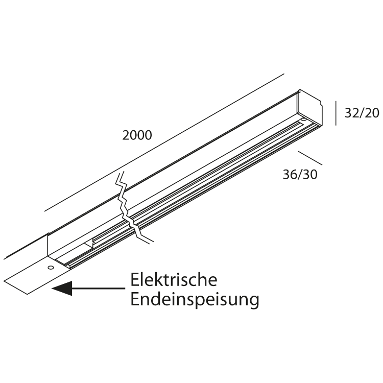 Set bestehend aus einer 3-Phasenschiene mit 2 Metern L„nge mit einer Endeinspeisung und einer Endkappe in silber
